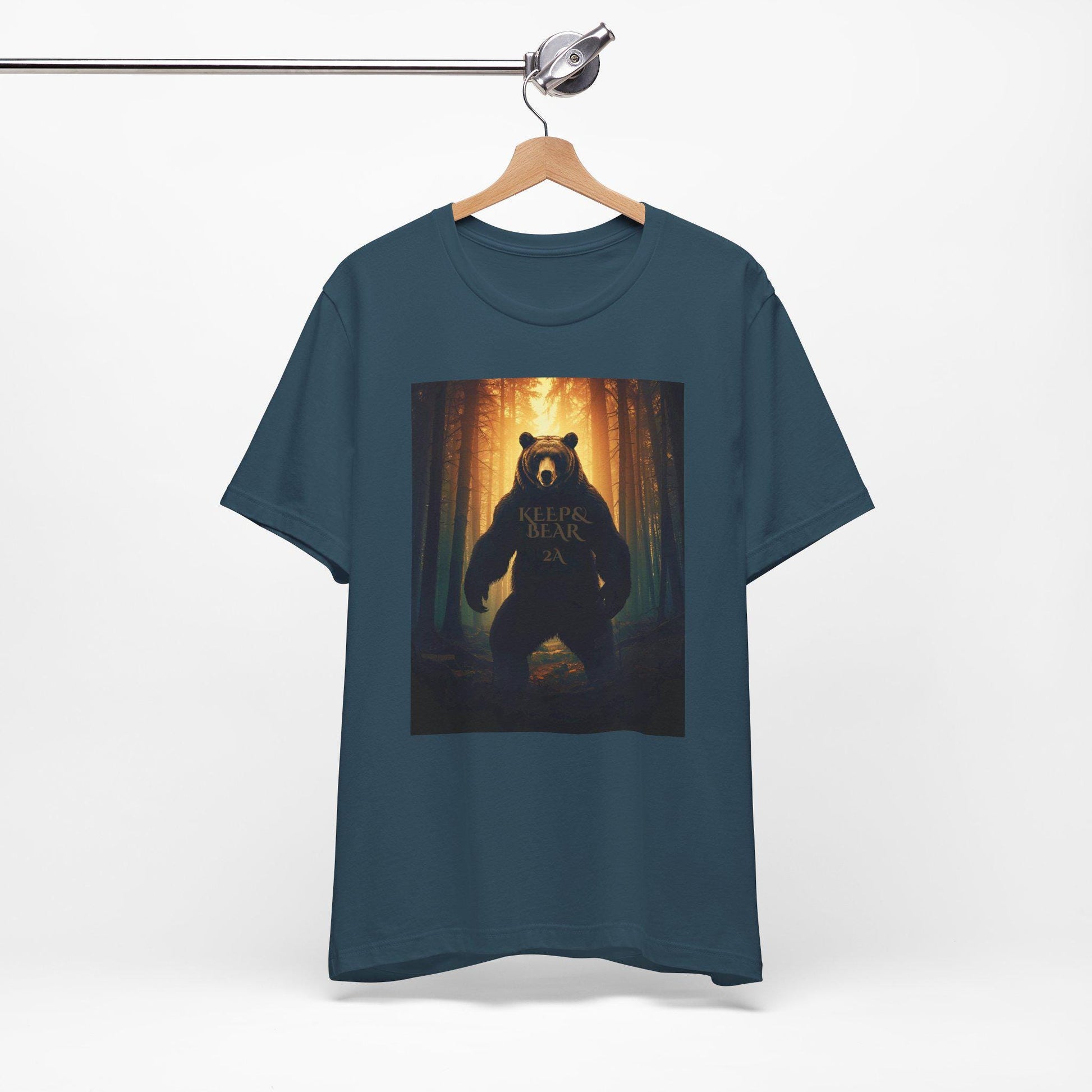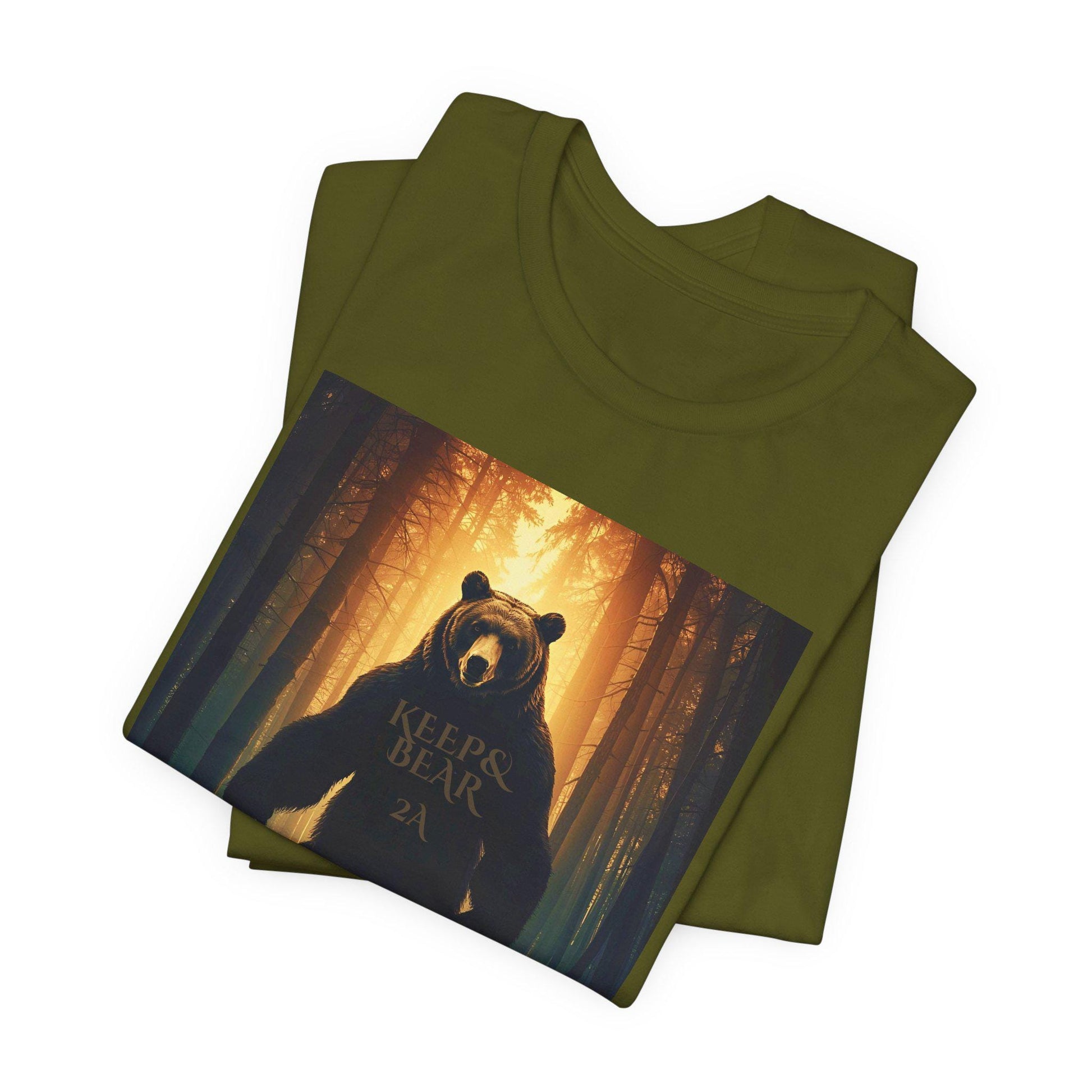 Stand tall for freedom in this bold Keep & Bear 2A T-shirt. Featuring a powerful bear design in a forest backdrop with the words Keep & Bear 2A, this shirt combines rugged style with a strong statement of support for the Second Amendment.