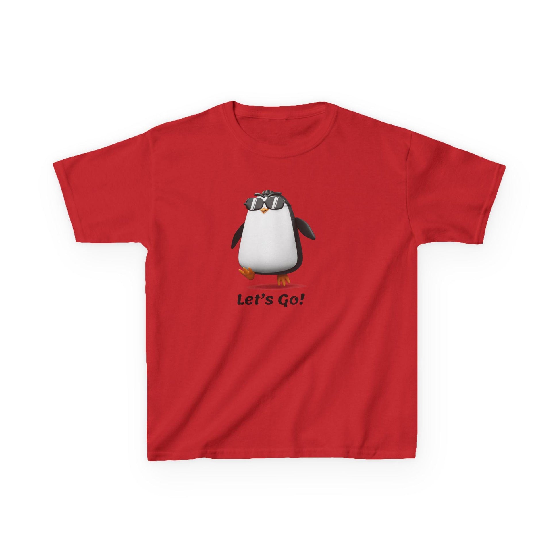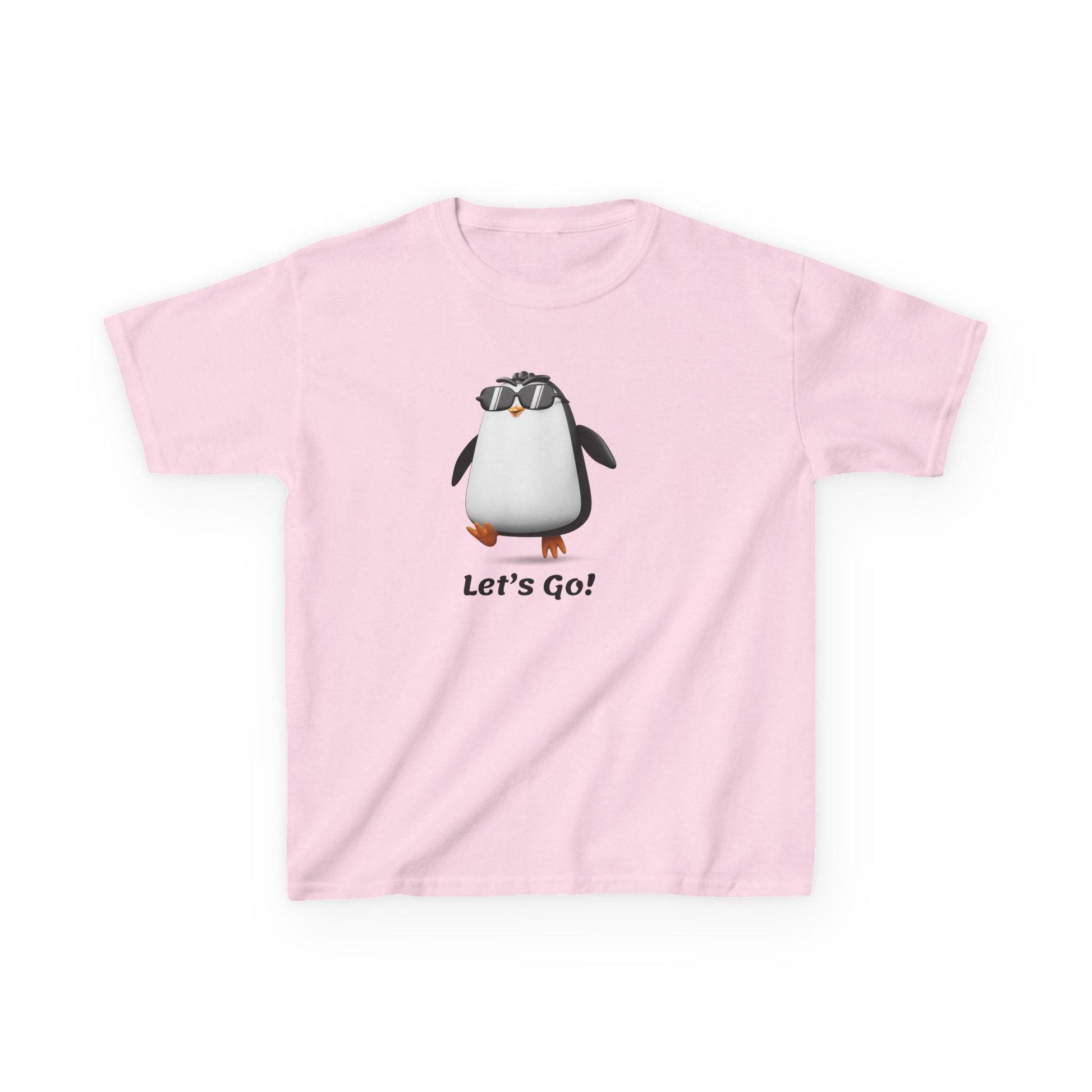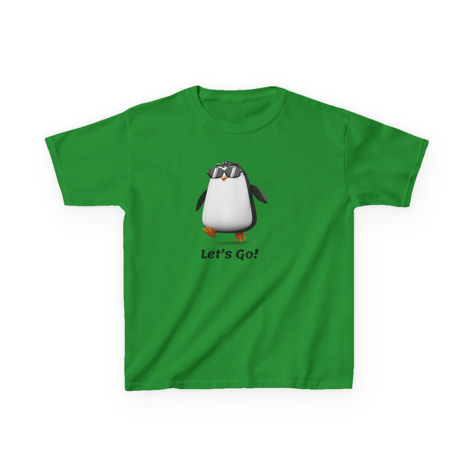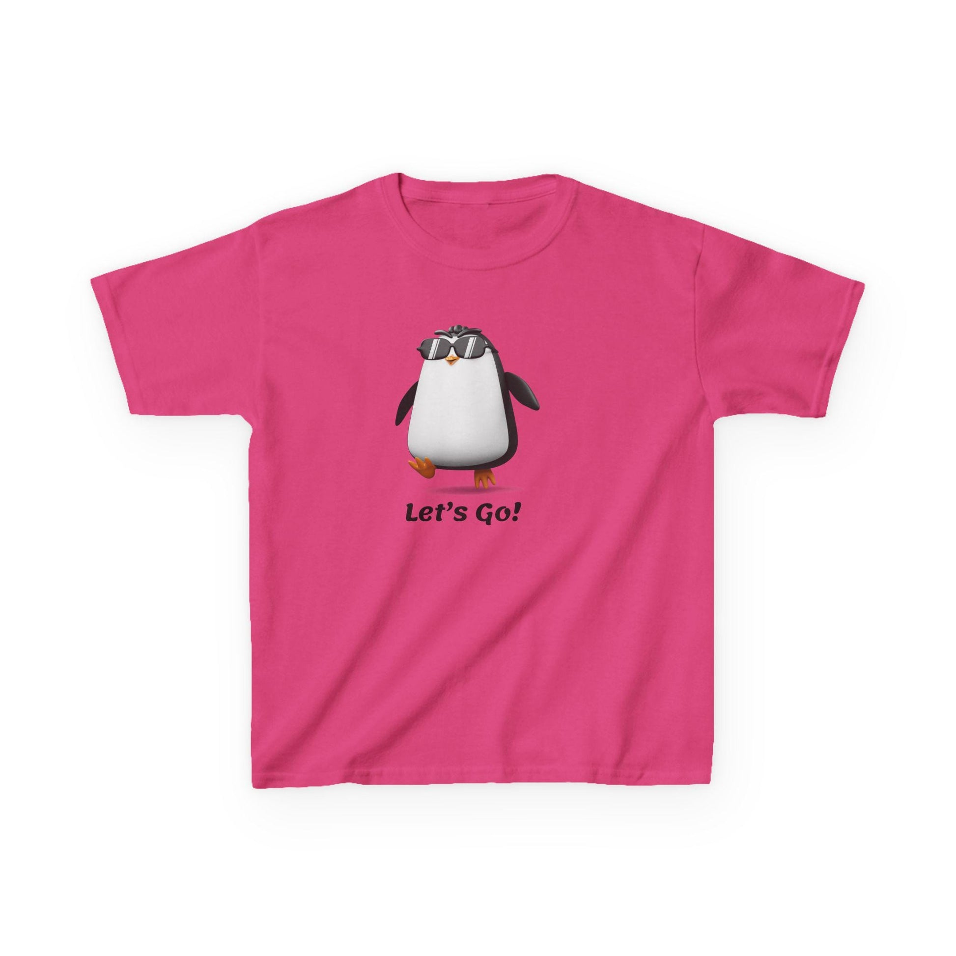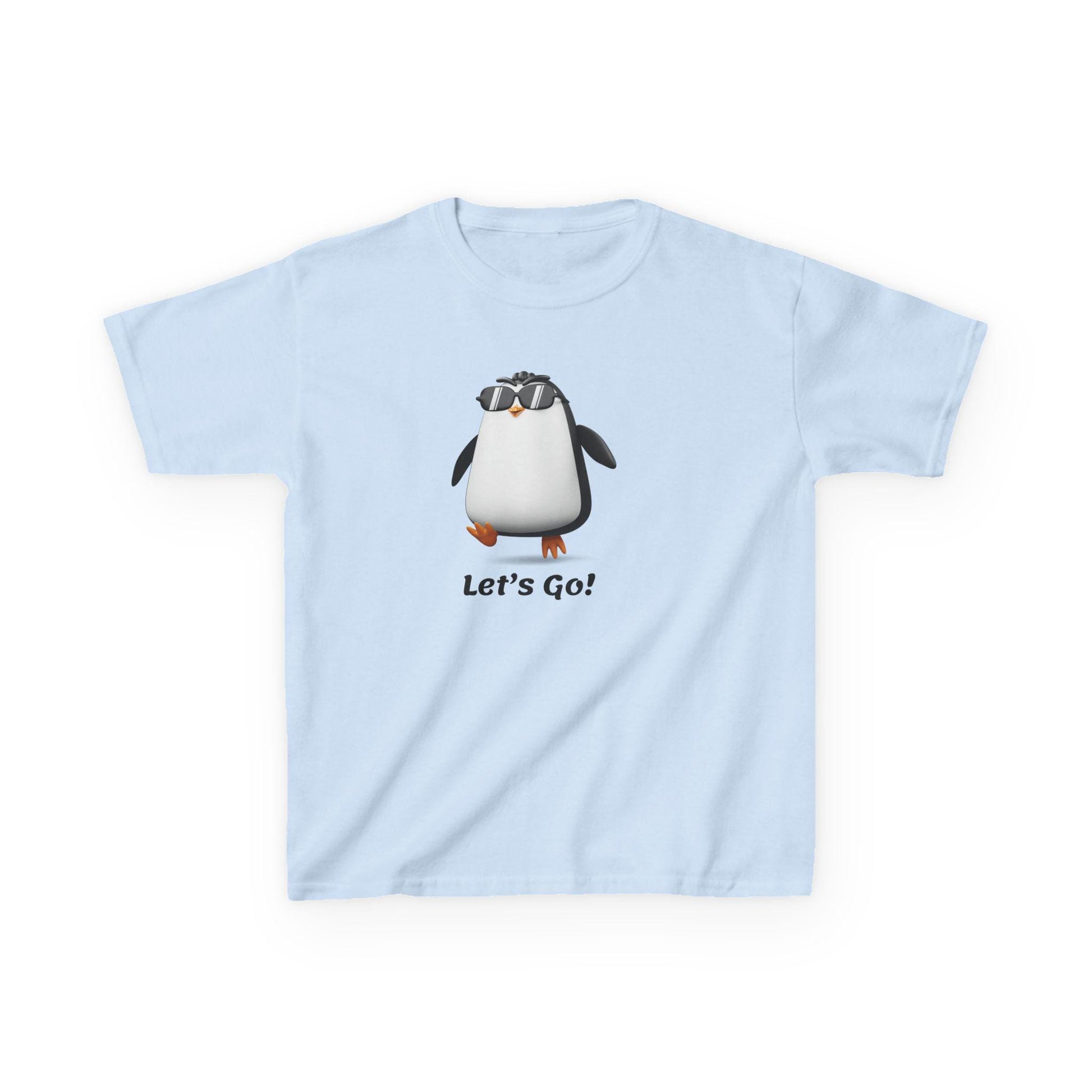 Fun and playful Kids Let's Go T-Shirt featuring a penguin in sunglasses ready to roll. Perfect for active kids who love cute and quirky designs. Ideal for everyday wear, playdates, and casual outings. Great for gifting on birthdays, holidays, or just because.