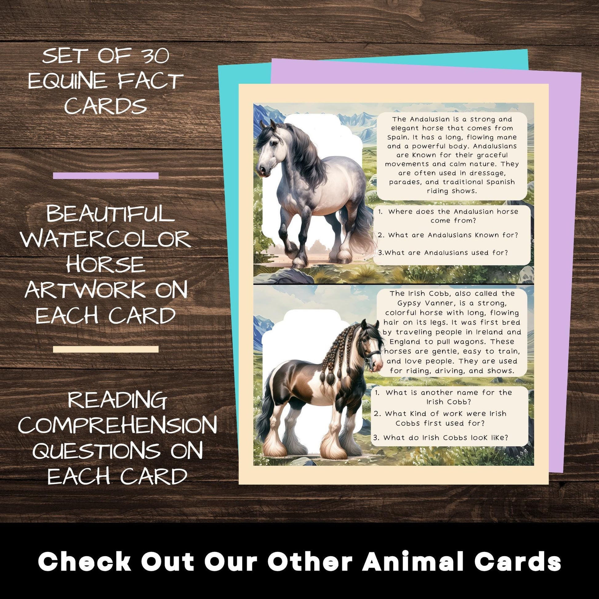 Mane Facts: Montessori Horse Breed Reading Comprehension Cards for Early Learners K-3rd Grade