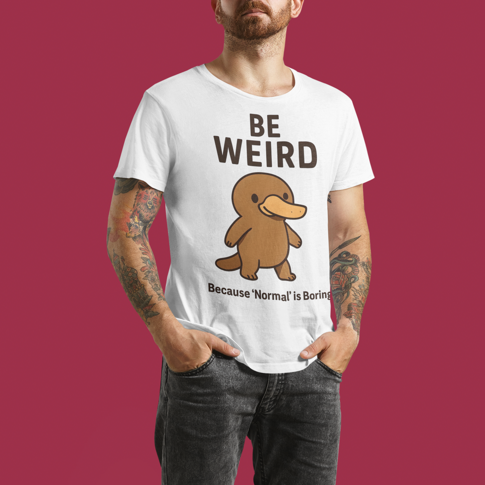 This quirky tee features a duck-billed platypus with the words "Be weird because normal is boring." Perfect for independent thinkers who value uniqueness.