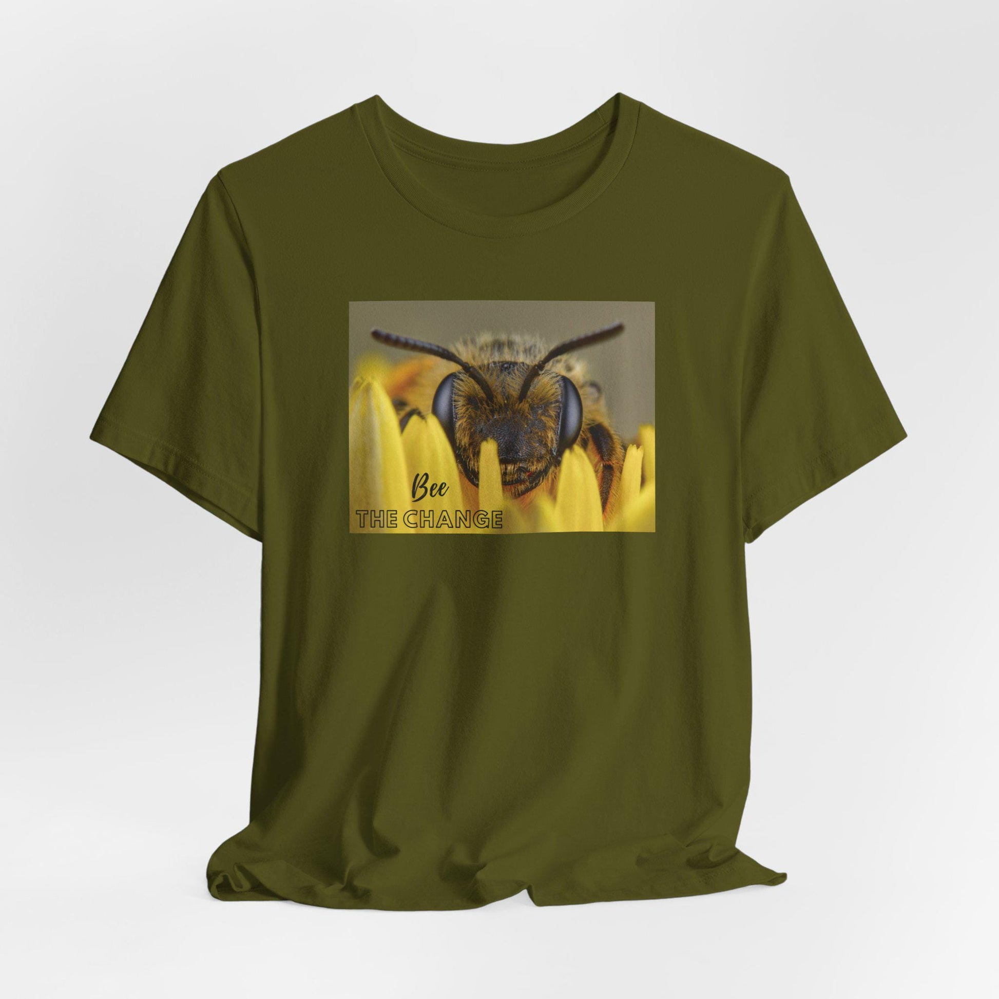 This "Bee the Change" classic jersey short sleeve tee is sure to become a well-loved favorite. It's perfect for positive thinkers and nature lovers alike. Soft cotton and quality print make users fall in love with it over and over again. These t-shirts have-ribbed knit collars to bolster shaping. The shoulders are tapered for a better fit over time. Dual side seams hold the garment's shape for longer.