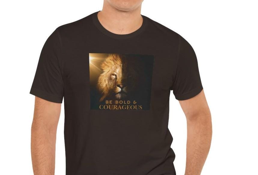 Men's Bold and Courageous Lion Jersey Tee, Christian Strength, Courage Inspirational Shirt