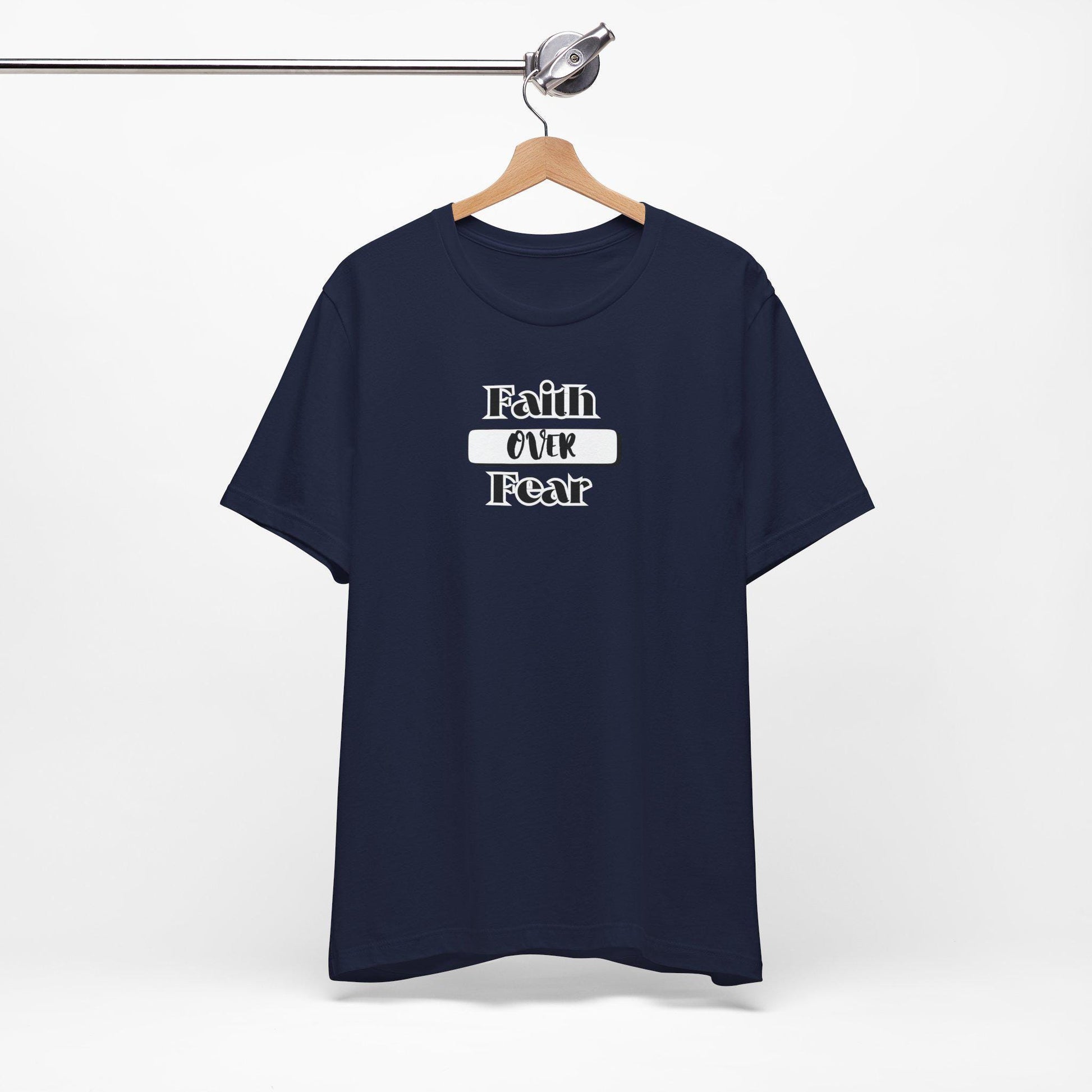 A minimalistic "Faith Over Fear" Christian tee perfect for those who want to express their faith with a simple yet powerful design. This tee is versatile for everyday wear. Ideal for adults looking for a comfortable, breathable shirt to layer or wear on its own.