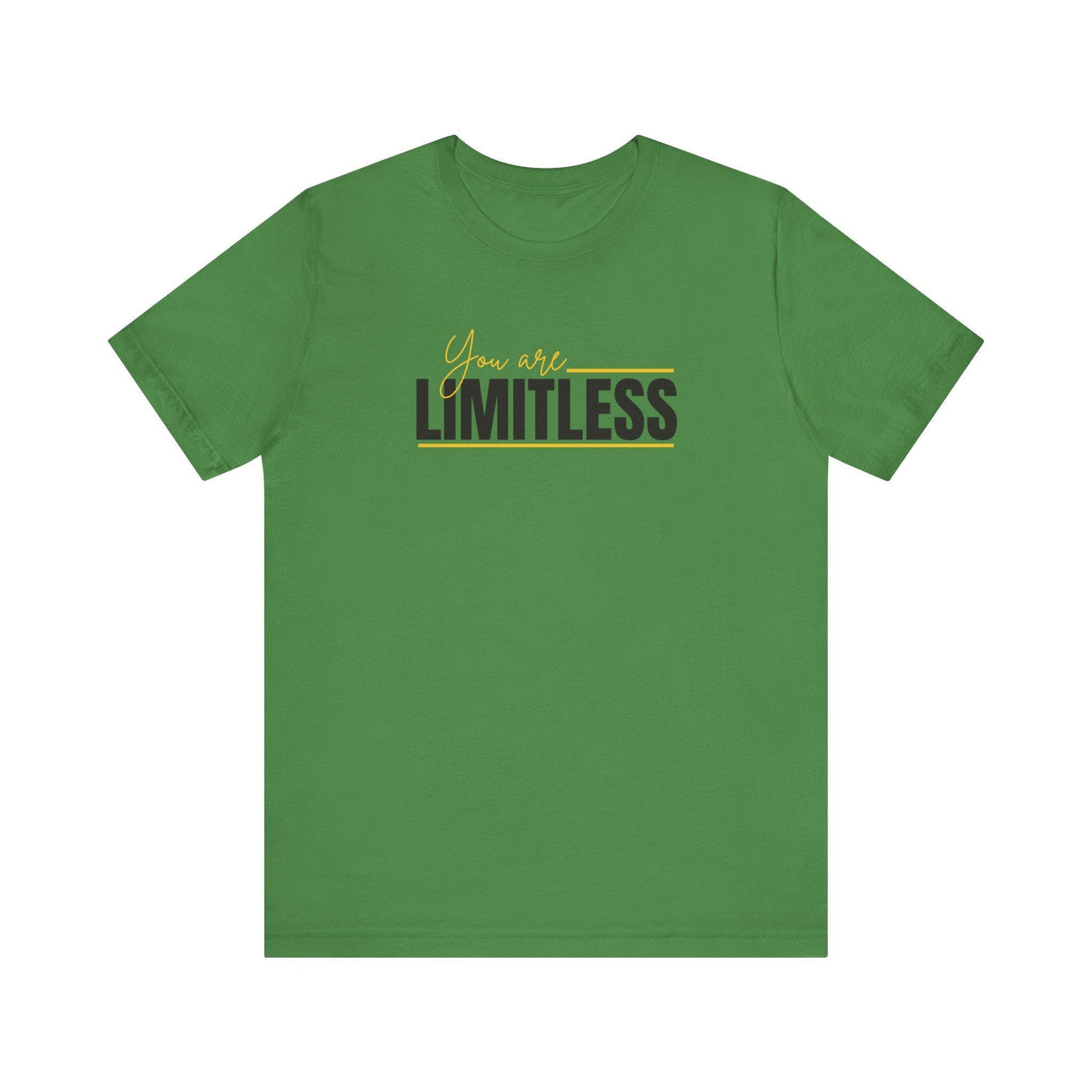 Defy expectations with this "You are Limitless" t-shirt. This classic unisex jersey short sleeve tee fits like a well-loved favorite. Soft cotton and quality print make users fall in love with it over and over again. These t-shirts have-ribbed knit collars to bolster shaping. The shoulders are tapered for a better fit over time. Dual side seams hold the garment's shape for longer.