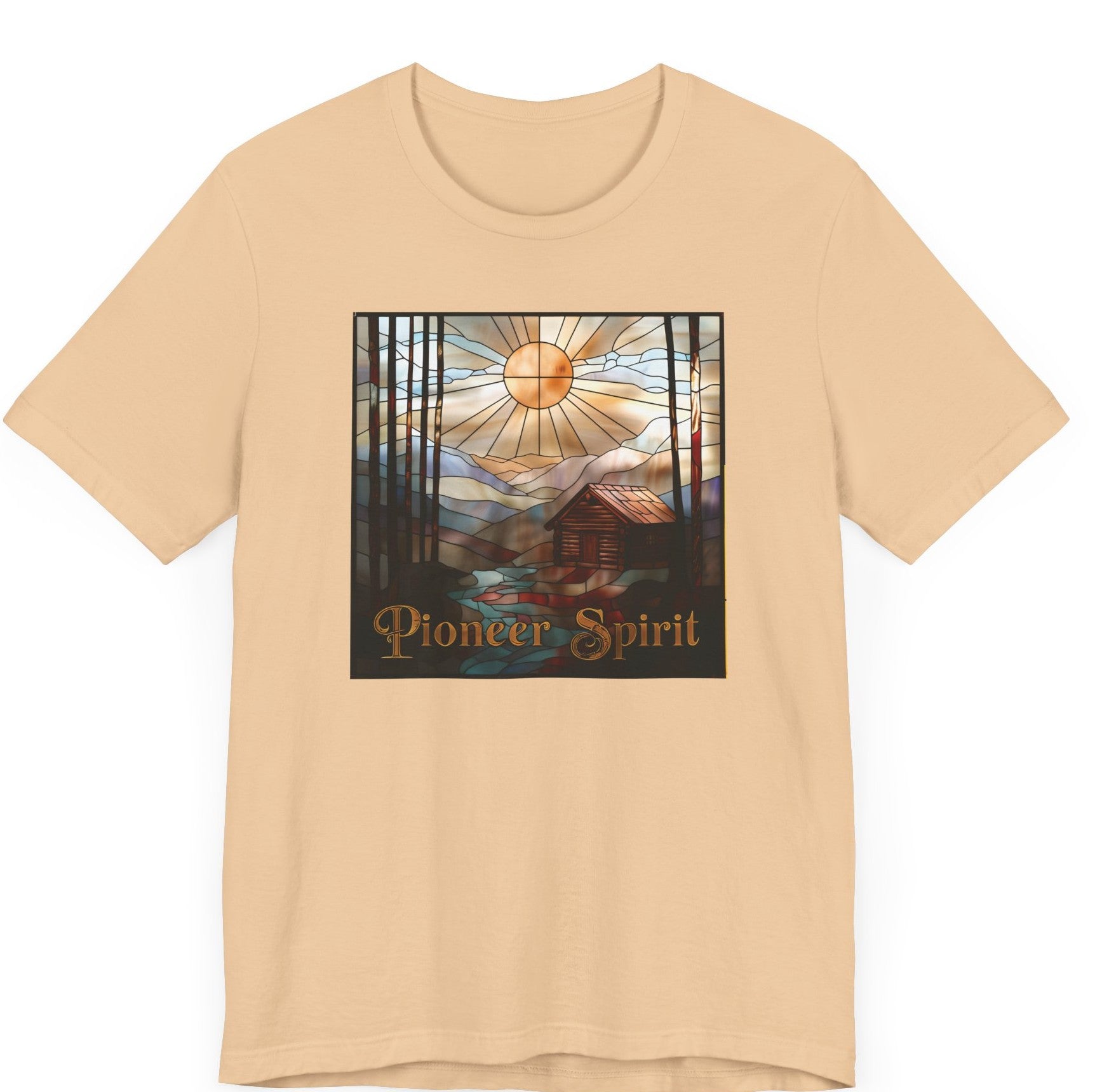 For all the men and women who enjoy nature, homesteading, or getting back to their roots, this Pioneer Spirit tee makes a perfect gift. Featuring a beautiful stained glass cabin and wilderness design, this classic unisex jersey short sleeve tee fits like a well-loved favorite. Soft cotton and quality print make users fall in love with it over and over again. These t-shirts have-ribbed knit collars to bolster shaping. The shoulders are tapered for a better fit over time. Dual side seams hold the garment's shape for longer.