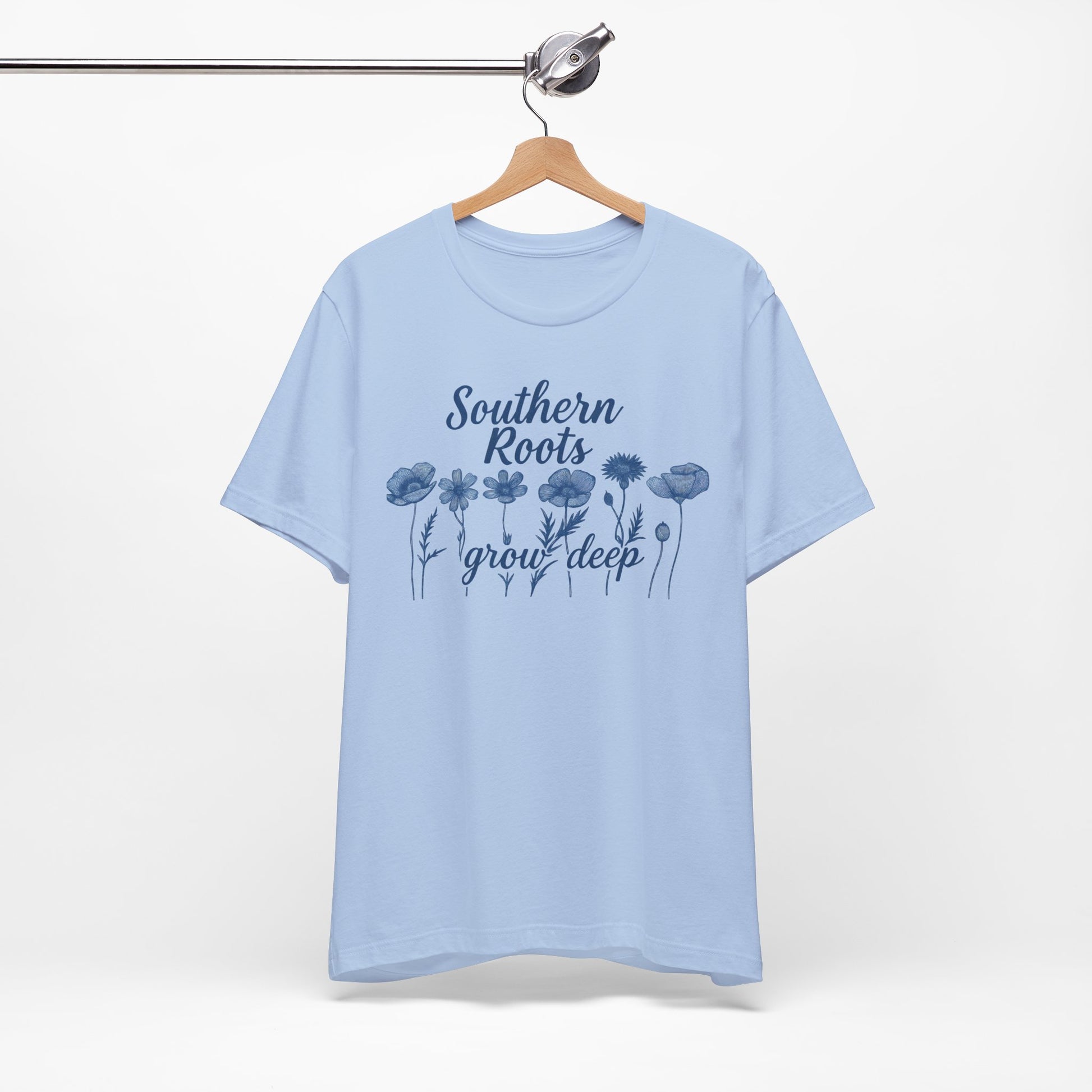 Show your love for your southern roots with the beautiful floral tee. It makes a perfect gift for the southern girl in your life. This classic unisex jersey short sleeve tee fits like a well-loved favorite. Soft cotton and quality print make users fall in love with it over and over again. These t-shirts have-ribbed knit collars to bolster shaping. The shoulders are tapered for a better fit over time. Dual side seams hold the garment's shape for longer.
