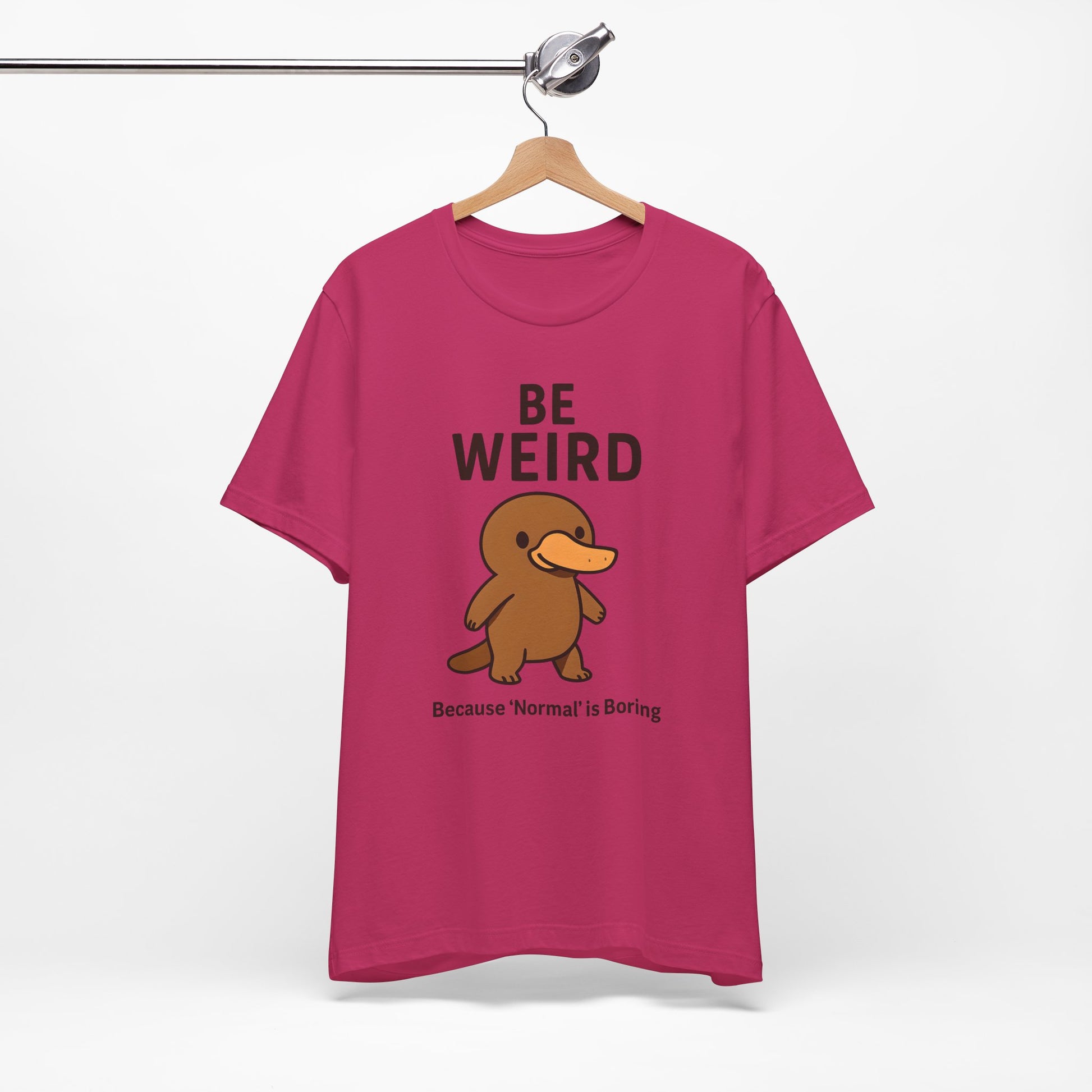 This quirky tee features a duck-billed platypus and the words "Be weird because normal is boring." Perfect for the independent thinker who values uniqueness.