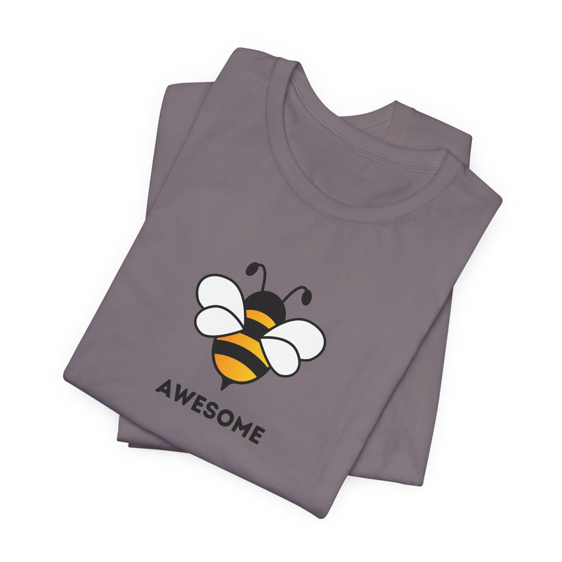 Add a little fun to your wardrobe with this colorful, upbeat Bee Awesome tee. This classic unisex jersey short sleeve tee fits like a well-loved favorite. Soft cotton and quality print make users fall in love with it over and over again. These t-shirts have-ribbed knit collars to bolster shaping. The shoulders are tapered for a better fit over time. Dual side seams hold the garment's shape for longer.