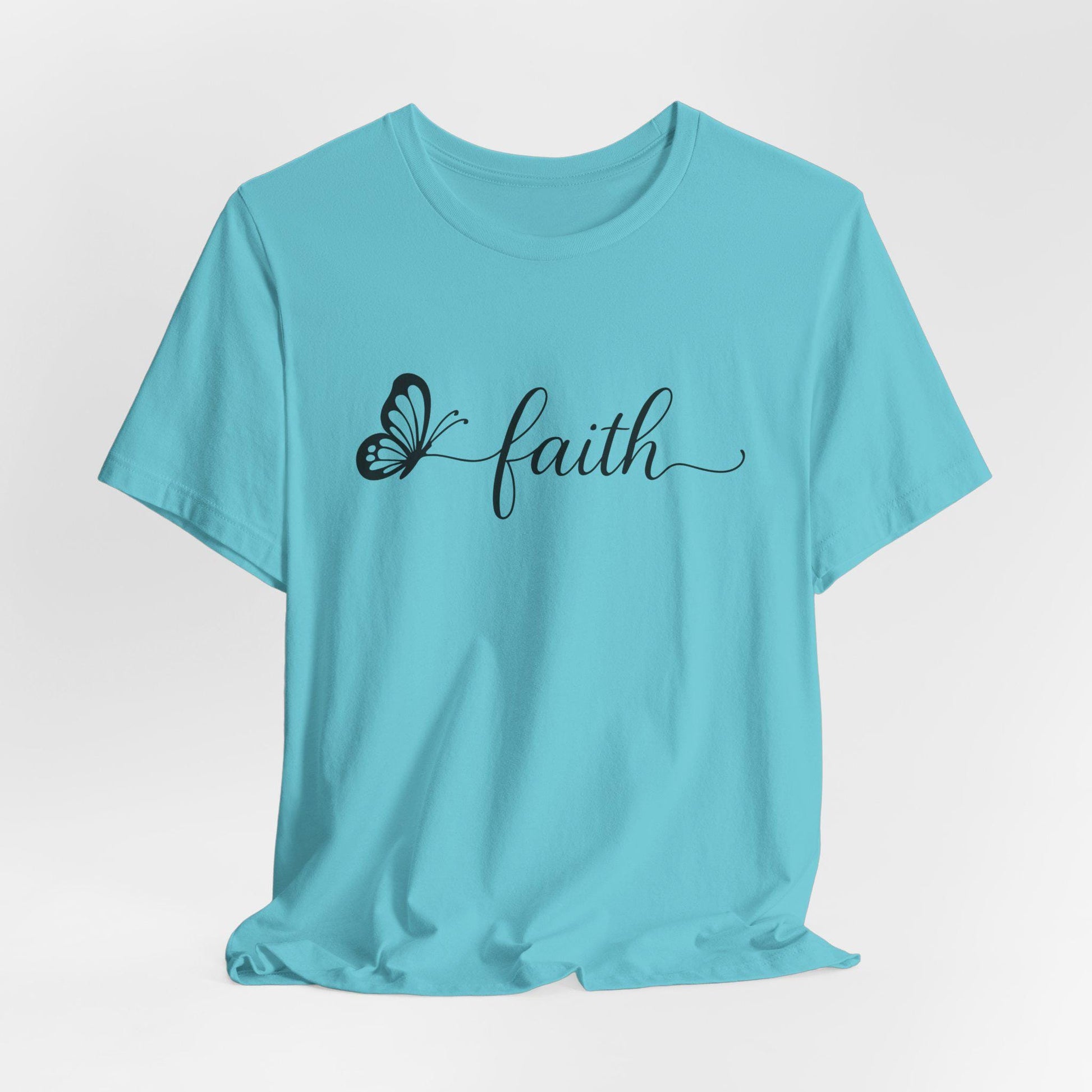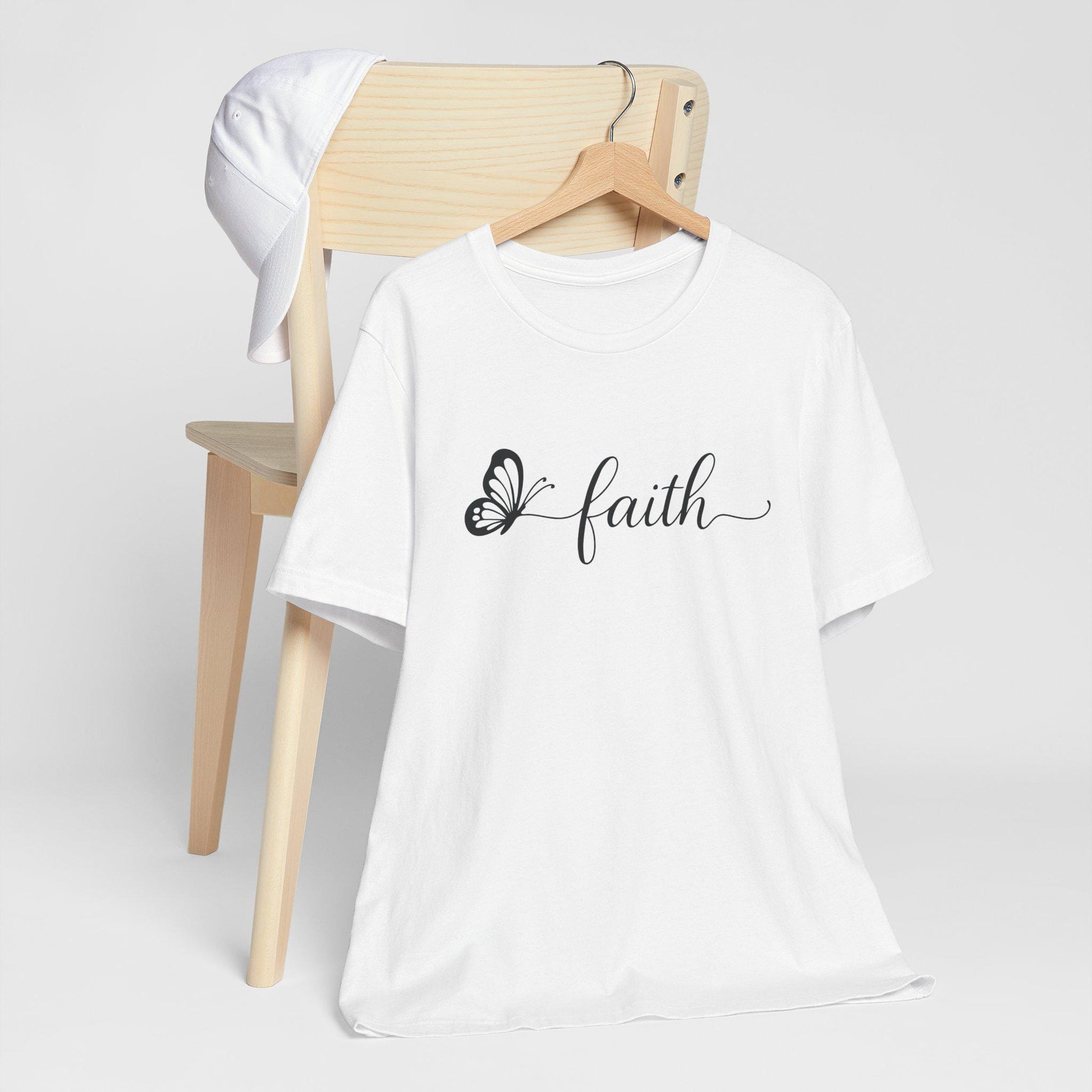 With beautiful script and a lovely butterfly, this "Faith" t-shirt is perfect for believers and nature lovers alike. This classic unisex jersey short sleeve tee fits like a well-loved favorite. Soft cotton and quality print make users fall in love with it over and over again. These t-shirts have-ribbed knit collars to bolster shaping. The shoulders are tapered for a better fit over time. Dual side seams hold the garment's shape for longer.