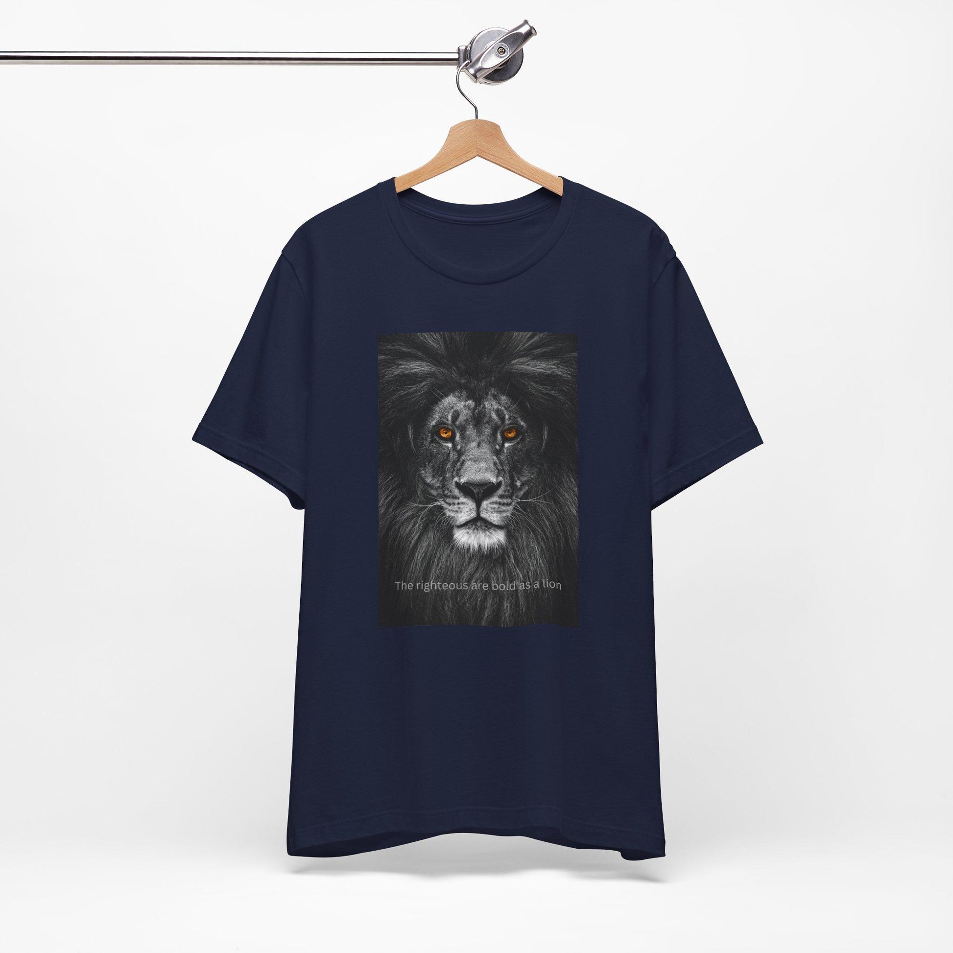 This striking tri-tone "The righteous are bold as a lion" Christian tee makes a bold statement of faith. Perfect to layer or wear on its own, this shirt is ideal for the believer in your life. This classic unisex jersey short sleeve tee fits like a well-loved favorite. Soft cotton and quality print make users fall in love with it over and over again. These t-shirts have-ribbed knit collars to bolster shaping. The shoulders are tapered for a better fit over time. Dual side seams hold the garment's shape for longer.