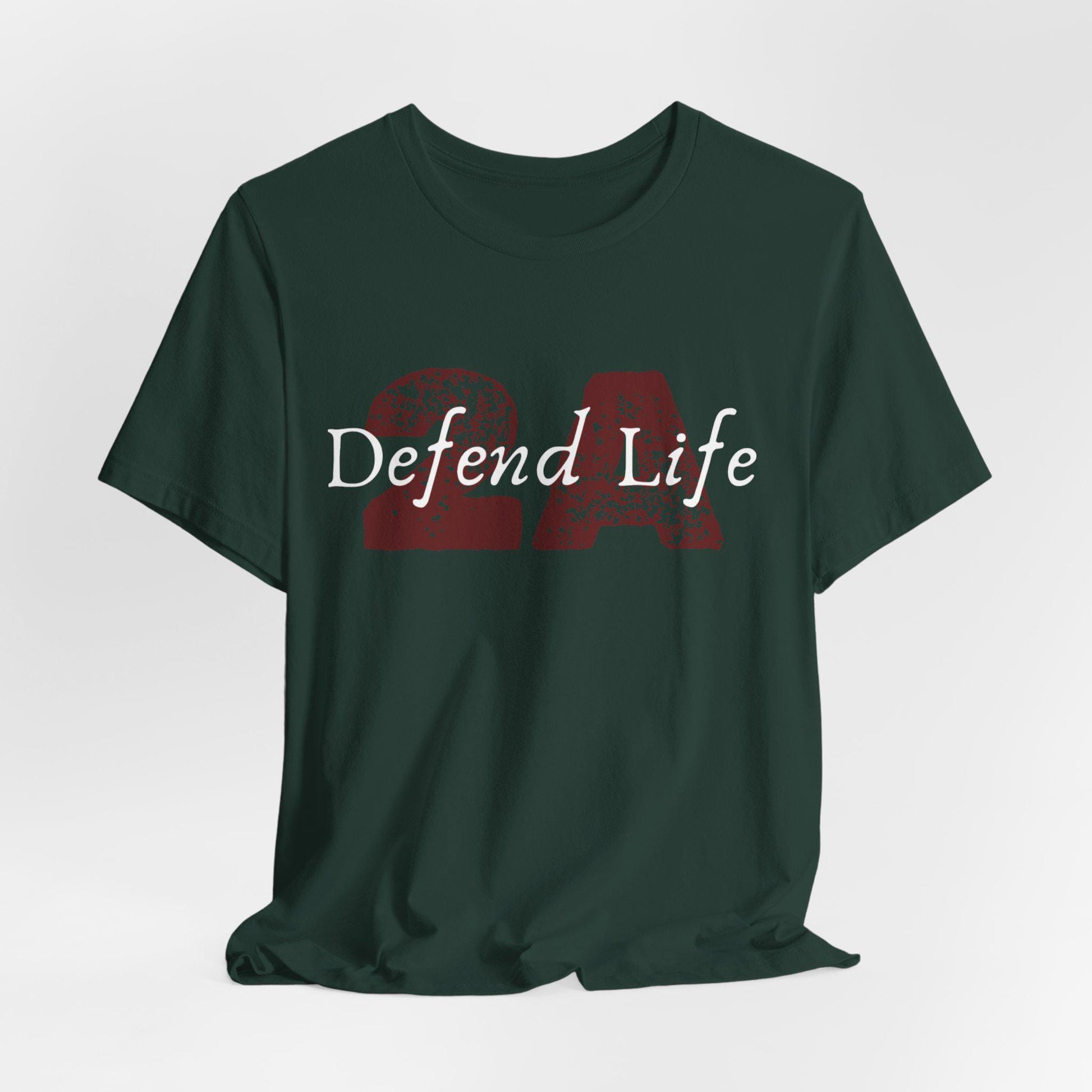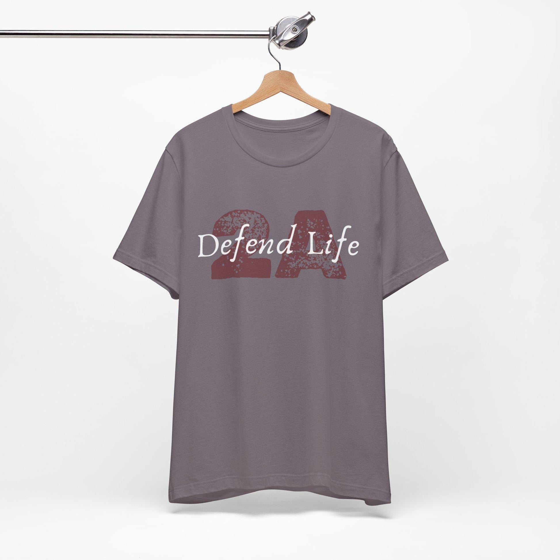 Show your support for the 2nd Amendment with this "Defend Life 2A" tee. It fits like a well-loved favorite. Soft cotton and quality print make users fall in love with it over and over again. These t-shirts have-ribbed knit collars to bolster shaping. The shoulders are tapered for a better fit over time. Dual side seams hold the garment's shape for longer.
